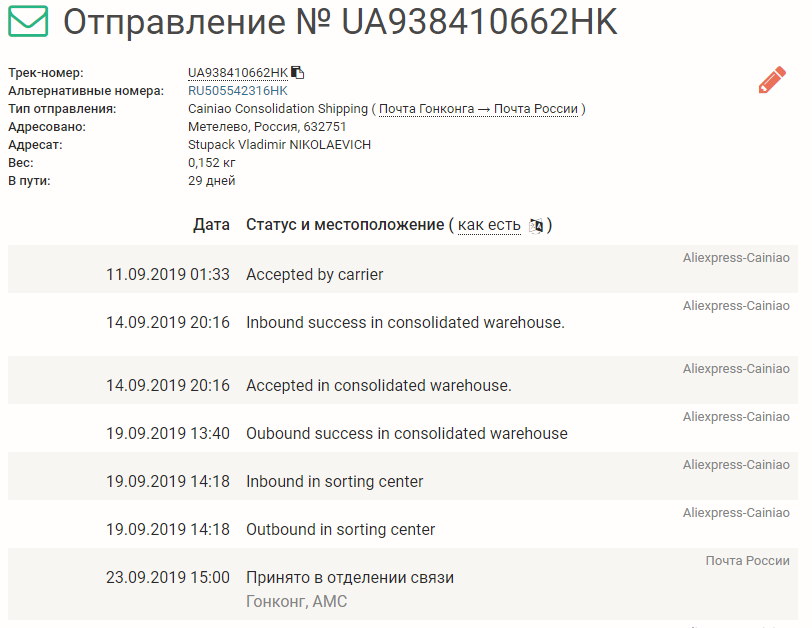 Заказ cainiao