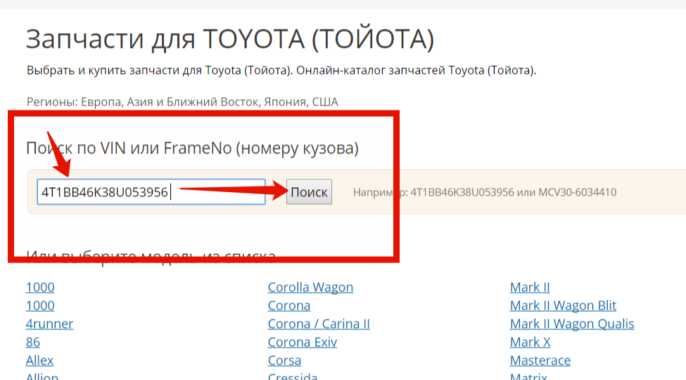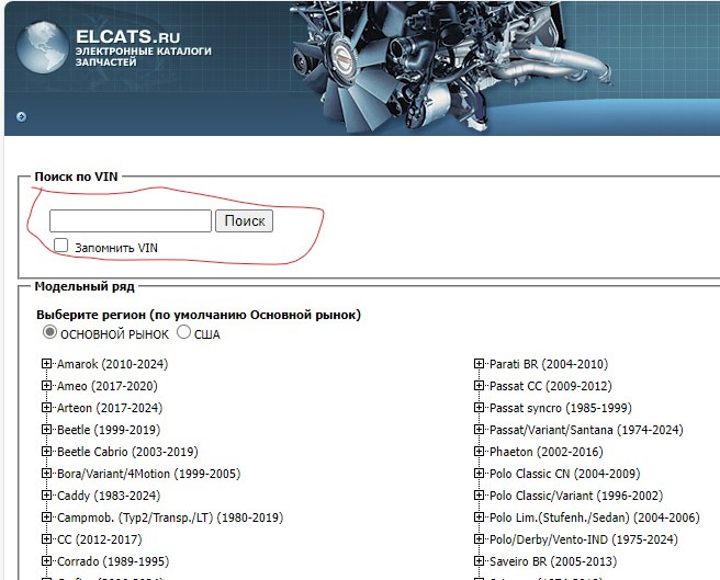 Заказ деталей по вин