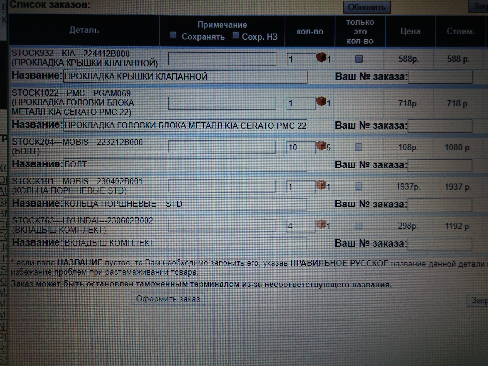 Заказ на 192 детали 109 фото