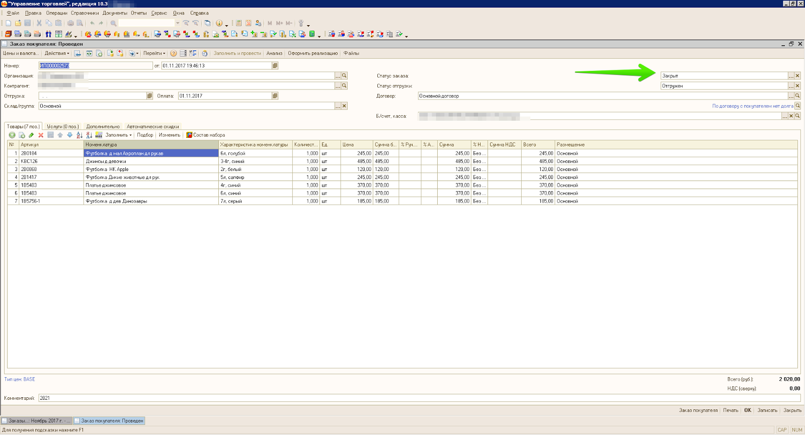 Заказ покупателя ут 10.3