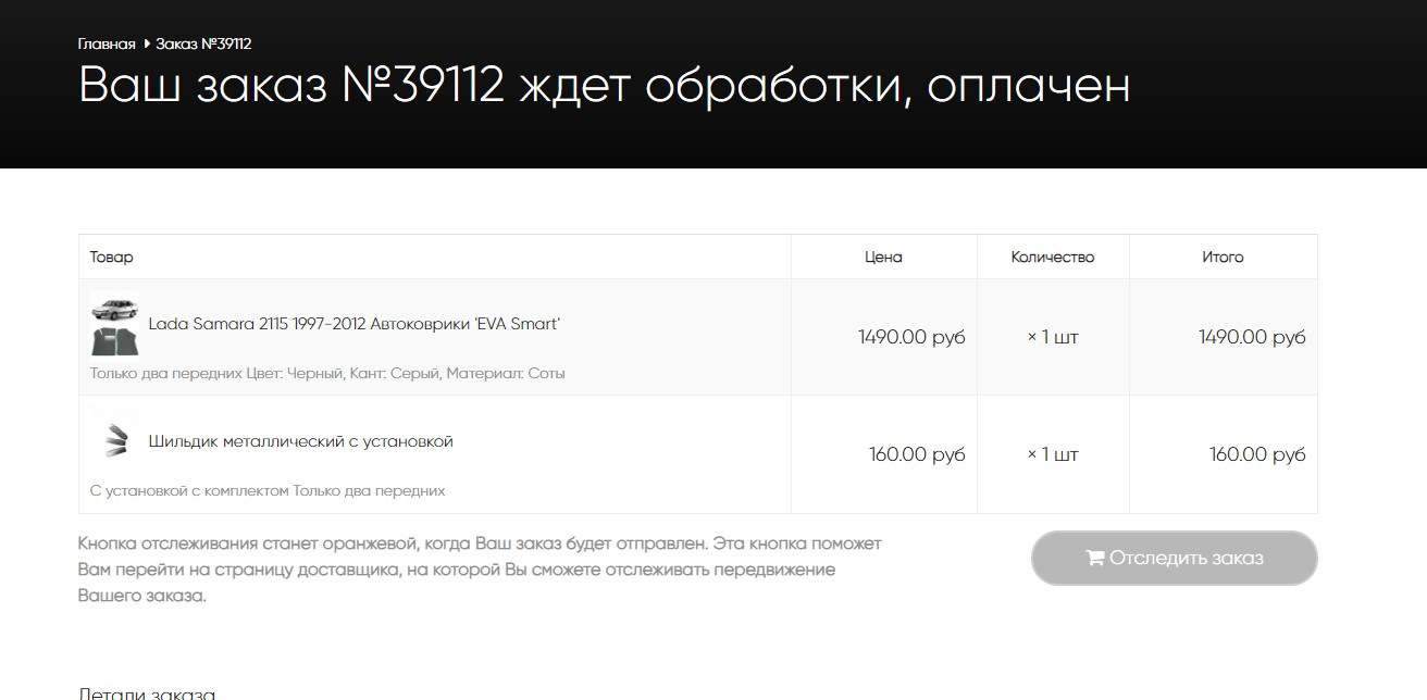 Заказ ждет обработки