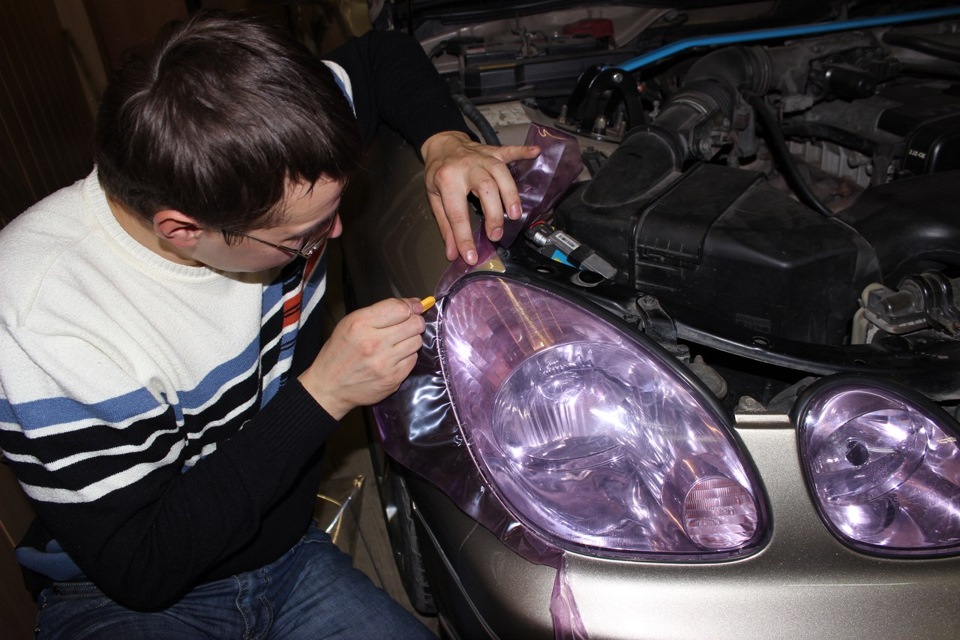 Заклеить фары бронепленкой