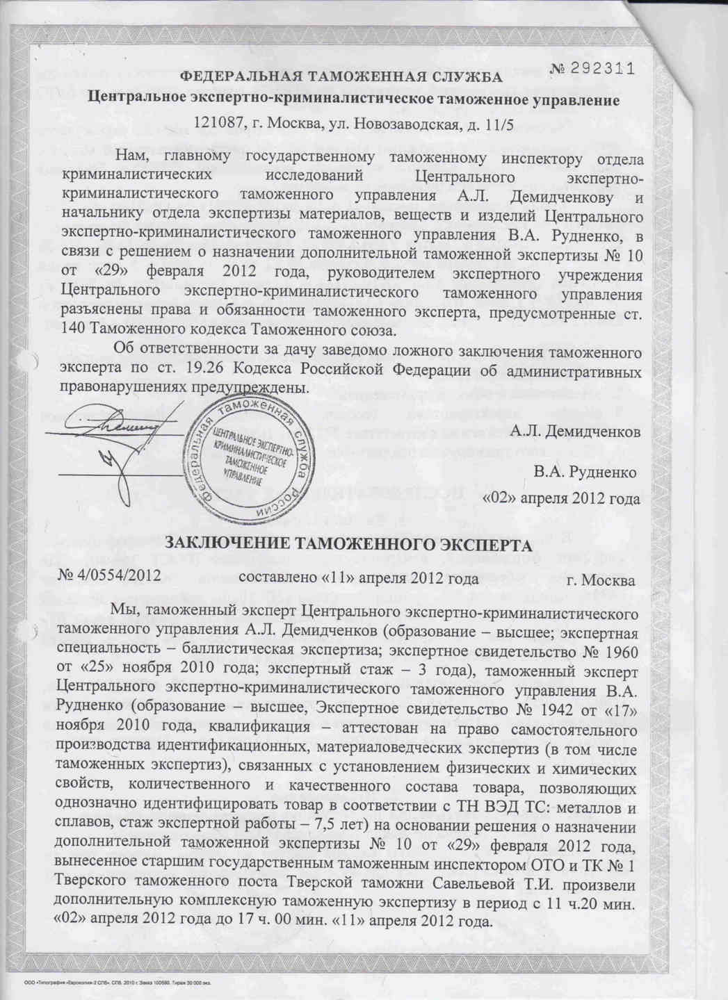 Заключение эксперта о том
