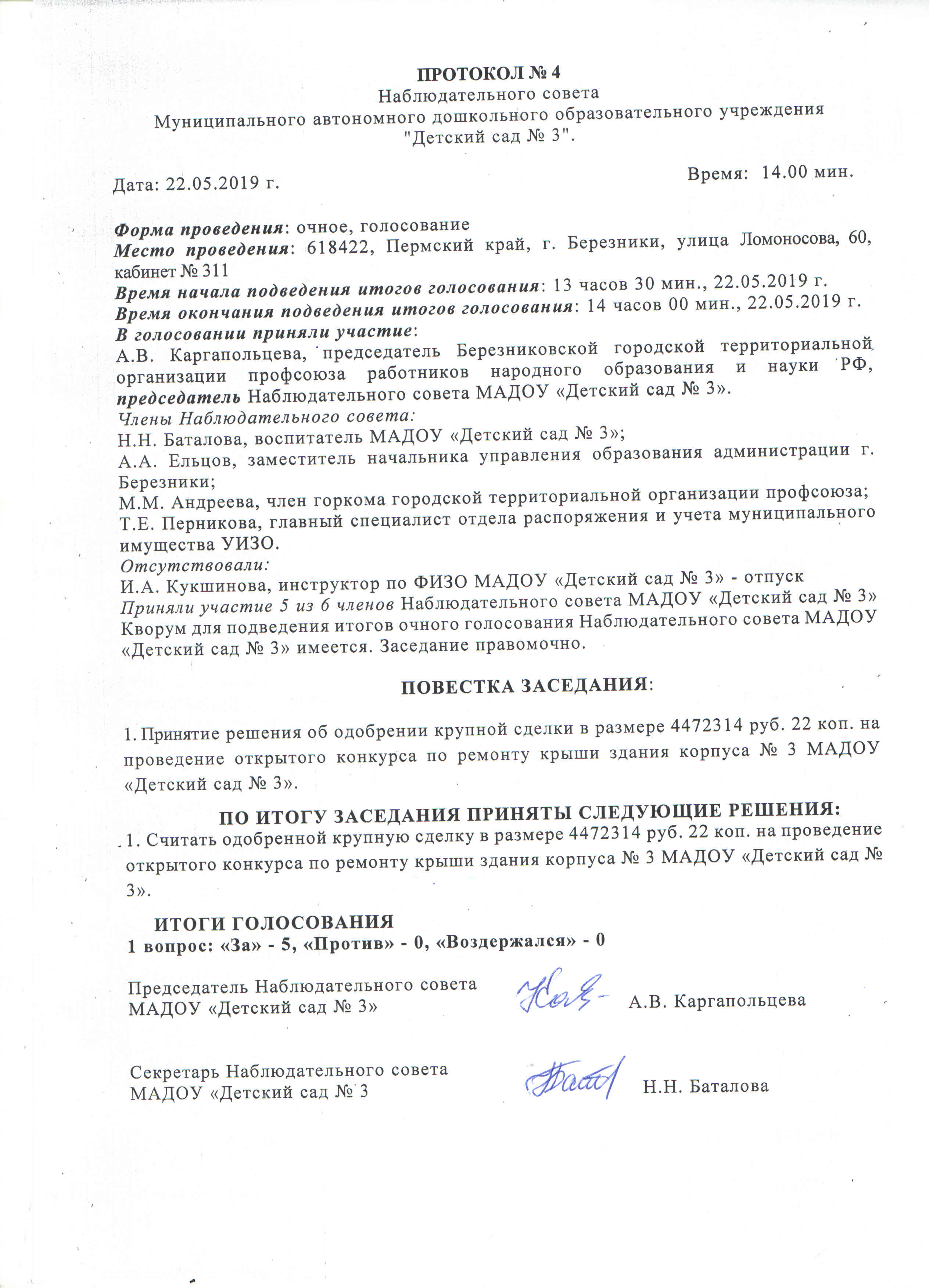 Заключение наблюдательного совета