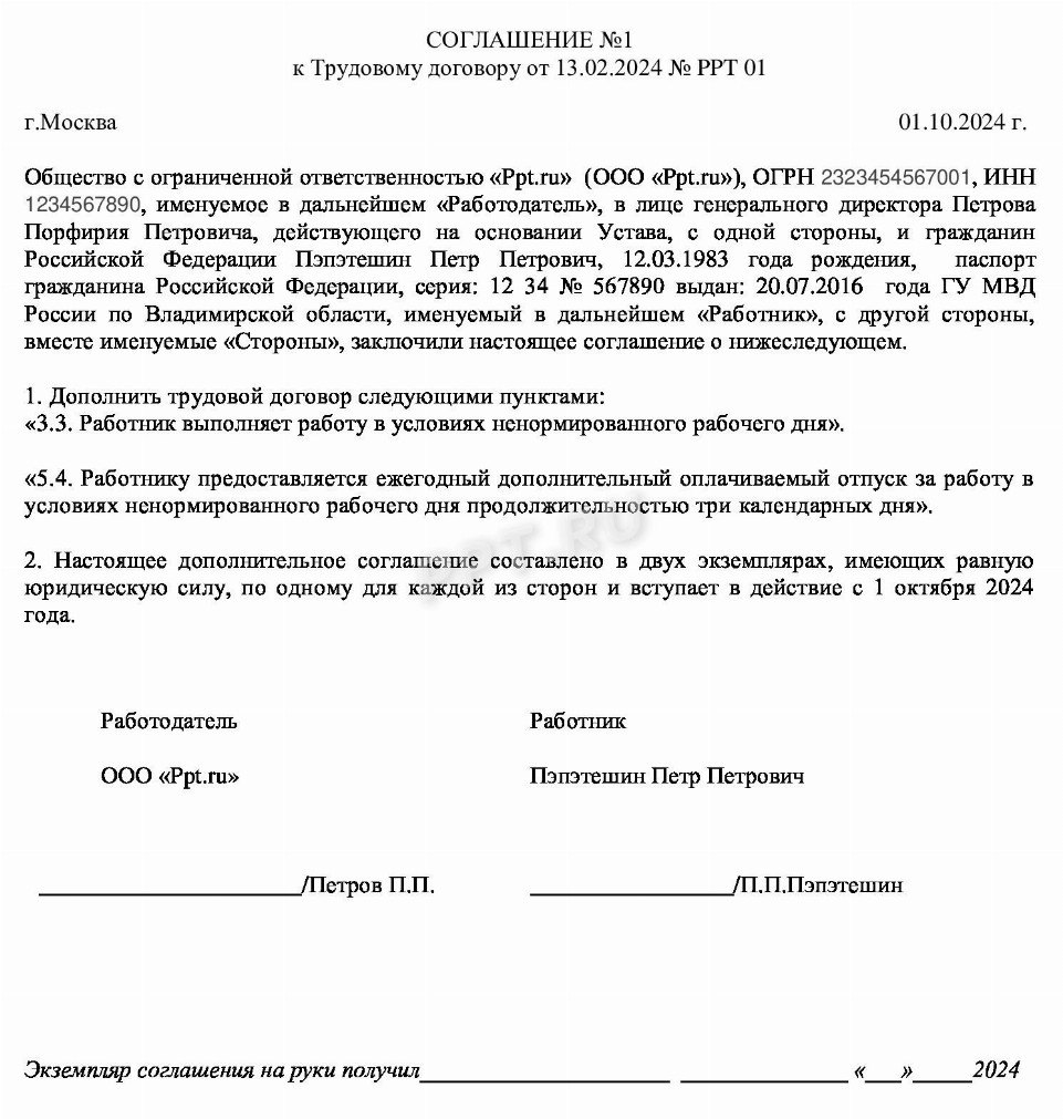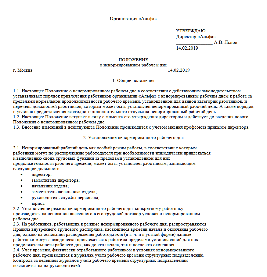 Закон о ненормированном рабочем