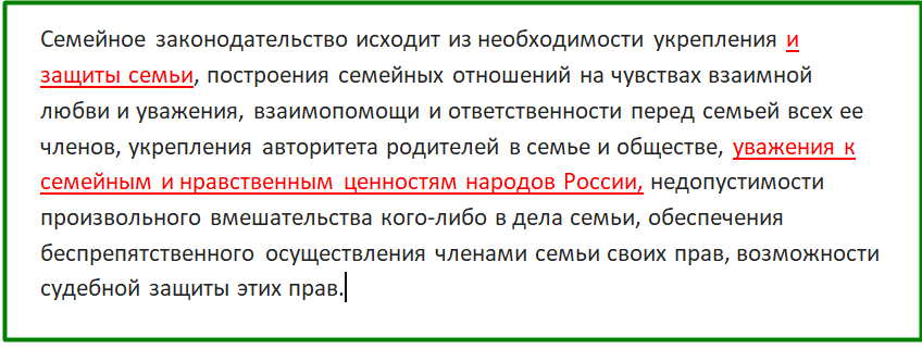 Как видите, добавляется "защита семьи", вместо ставшего привычным "развала семьи" под видом спасения ребенка, "укрепление авторитета родителей в семье и обществе" и "уважение к семейным и нравственным ценностям народов России", т.е ставится защита от любых новомодных веяний, чуждых нашей культуре.