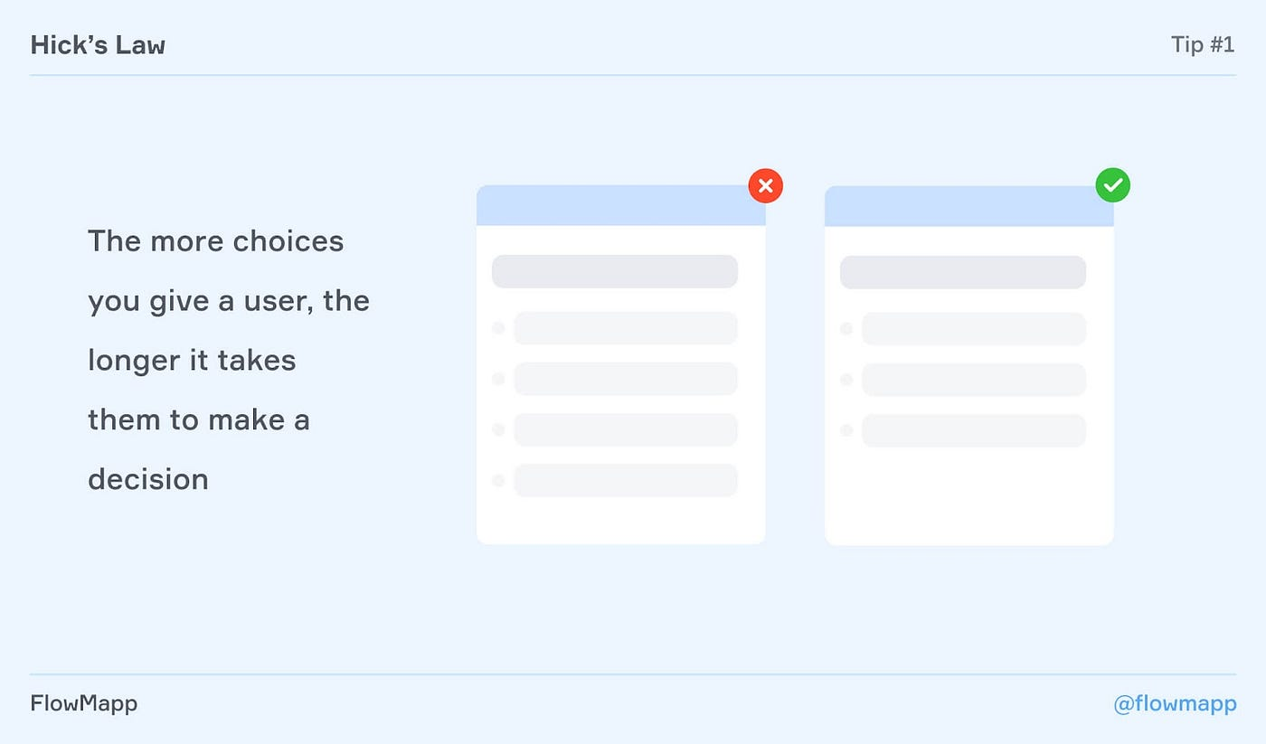 Суть закона: Время, затрачиваемое на принятие решения, увеличивается с количеством и сложностью вариантов.