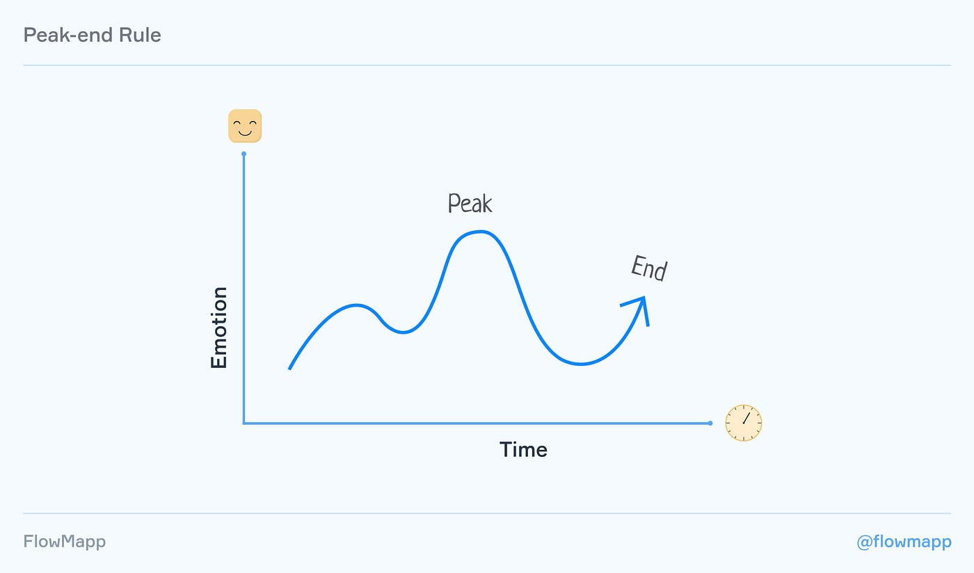 Правило пика и конца объясняет, как наши впечатления становятся воспоминаниями. Согласно правилу мы помним не сумму всех наших впечатлений, а только самые яркие положительные или отрицательные моменты и финал переживания.