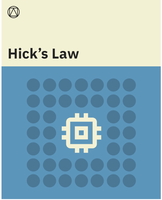 Закон Хика (или закон Хик-Хаймана) назван в честь британского и американского психологов Уильяма Эдмунда Хика и Рэя Хаймана. В 1952 году они решили измерить отношение между количеством стимулов и временем реакции индивида на каждый стимул. Как и следовало ожидать, чем больше стимулов воздействует на человека, тем дольше он принимает решение, какому из них поддаться. Если бомбардировать пользователя большим количеством опций, ему придется долго принимать решение и совершать работу, которую он совершать не хочет.
