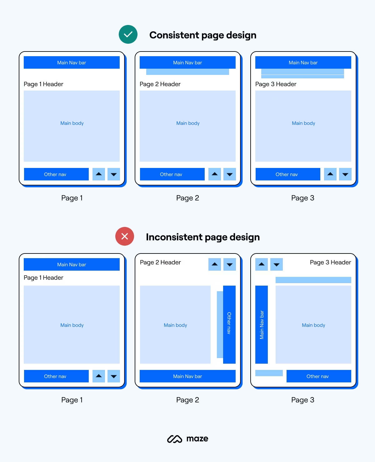 Пример: Когда вы посещаете новый интернет-магазин, вы ожидаете, что корзина покупок будет в верхнем правом углу, а меню навигации – вверху страницы. Если вы вдруг видите корзину внизу или меню сбоку, это вызывает недоумение и мешает покупкам.