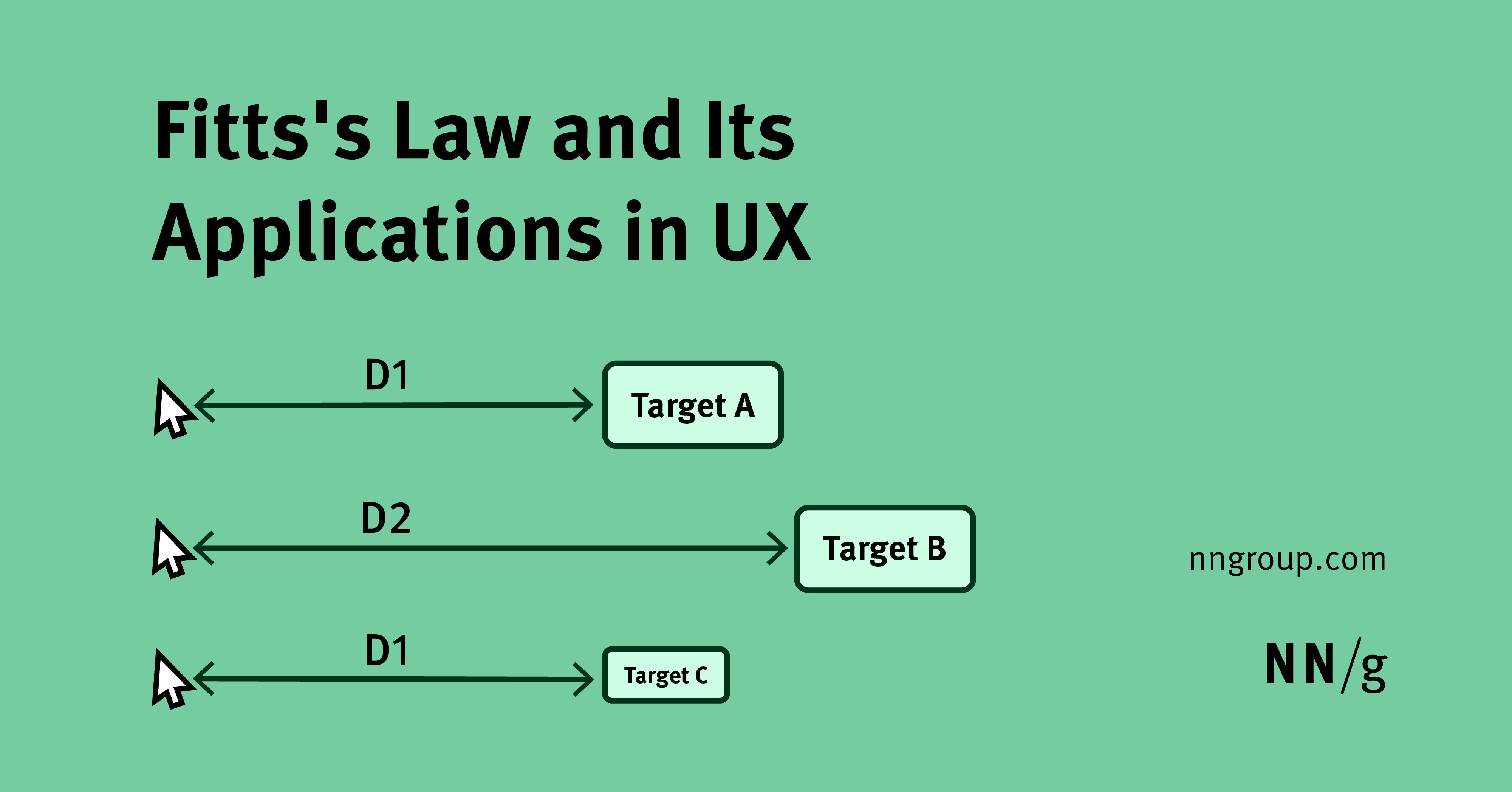 В 1954 году психолог Пол Фиттс, исследуя двигательную систему человека, показал, что время, которое необходимо для перемещения к цели, зависит от расстояния до нее, и вместе с тем обратно пропорционально ее размеру. Согласно его закону, быстрые движения и маленькие кнопки приводят к большему количеству ошибок из-за сложности прицеливания. Хотя существует множество вариантов закона Фиттса, все они отражают одну идею. Закон Фиттса широко применяется в проектировании пользовательского опыта (UX) и интерфейса (UI). В частности, следуя этому закону, интерактивные кнопки стали делать большими (особенно на управляемых пальцами мобильных устройствах) — маленькие кнопки сложнее и дольше нажимать. Также расстояние между областью внимания пользователя и целевой кнопкой должно быть настолько маленьким, насколько это возможно.