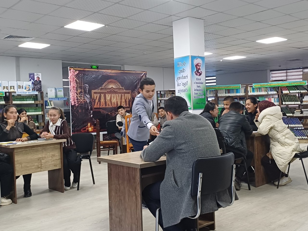 “Zakovat” intellektual o’yinining bosh maqsadi – talaba, o'quvchi - yoshlarni haqiqiy bilim maydonida birlashtirish, sog’lom raqobatni shakllantirish, do’stlar orttirish, hurmat-e`tibor qozonish, o’tib borayotgan vaqtni mazmunli o’tkazish, bilmagan narsalarni bilib olish, ham g’oliblik, ham mag’lubiyat nashidasini tatib ko’rishdan iborat. Shu jumladan joriy yilning 19 yanvar Zomin tuman axborot-kutubxona markazi binosida maktab o'quvchilari o'rtasida “Zakovat” intellektual o’yini taskil etildi. “Zakovat” intellektual o’yinida “Everest”, “Insayt”, “Action” jamoalari o'zaro kuch sinashdi. Jamoalar bo’sh vaqtlarini mazmunli o’tkazish, o’yinda bilimlarini sinash, rivojlantirish maqsadida ishtirok etdilar. Jamoalarning o’yinga bo’lgan qiziqishlari, intilishlari juda katta. O’yinning kulminatsion nuqtasi “Zakovat” sandiqchasi raundi savolining javobini “Everest” jamoasi yani 60-maktab o'quvchilari to’g’ri topib, jamoasiga ochko olib keldi. O’yinning “Raqamli savol” raundini “Insayt” jamoasidan boshqa barcha jamoalar savolning javobini to’g’ri topib, jamoasiga ochko olib keldi. O’yin so’ngida jamoalarning to’plagan ochkolari quyidagicha aniqlandi.