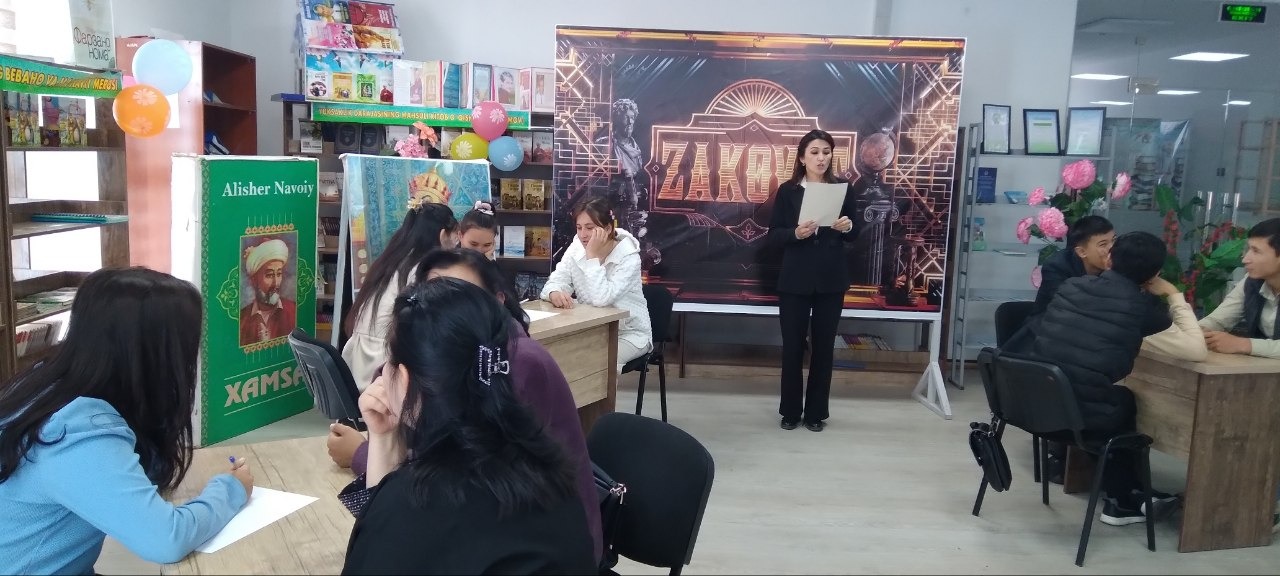 03.11.2023“Zakovat” intellektual o’yinining bosh maqsadi – yoshlarni haqiqiy bilim maydonida birlashtirish, sog’lom raqobatni shakllantirish, do’stlar orttirish, hurmat-e`tibor qozonish, o’tib borayotgan vaqtni mazmunli o’tkazish, bilmagan narsalarni bilib olish, ham g’oliblik, ham mag’lubiyat nashidasini tatib ko’rishdan iborat. Joriy yilning 3 noyabrda Jizzax viloyati Zomin tumani axborot-kutubxona markazi, Zomin tumanida joylashgan Yoshlar ittifoqi agentligi bilan hamkorlikda mahallalararo "Zakovat" intellektual o'yini o’tkazildi. Qiziqarli va murosasiz kechgan bellashuvda Bog’ishamol MFY “Yoshlar” jamoasi g’oliblikni qo’lga kiritdi. "Zakovat" intellektual o'yini qatnashchilariga esdalik sovg'alari va kitoblar jamlanmasi sovg’a qilindi. Zomin tumani, 1-sektordagi mahalla yoshlar jamoalari o’rtasida "Zakovat" intellektual o'yini bo'lib o'tdi.