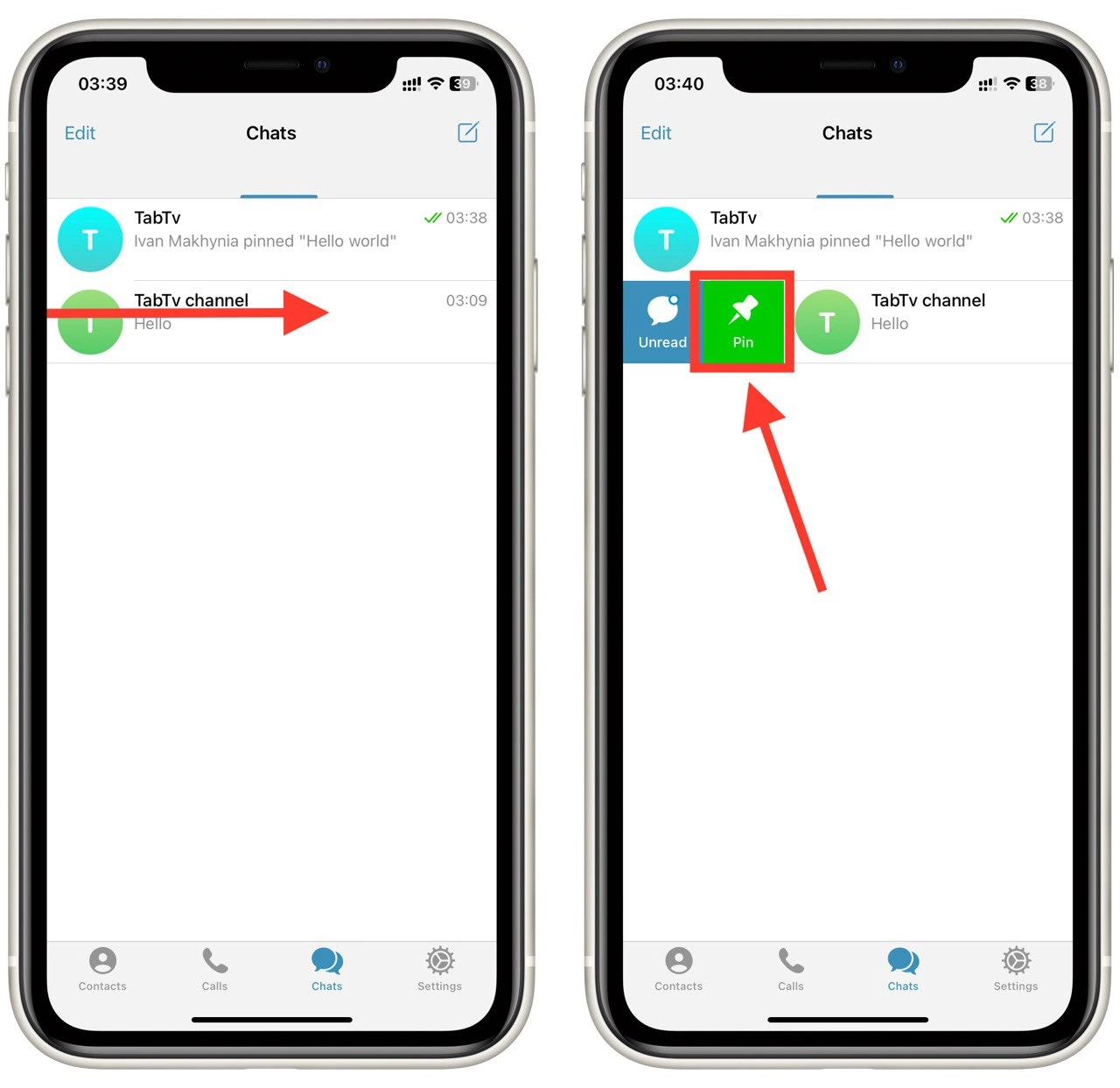 Закрепить чат в телеграмме на верхнем уровне