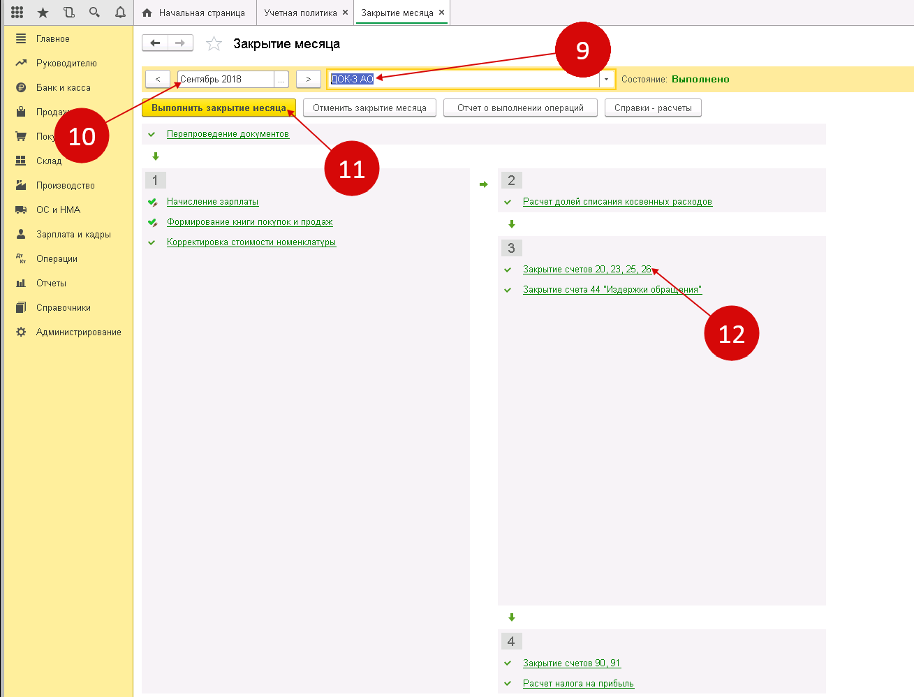 Закрытие счета 23 в 1с