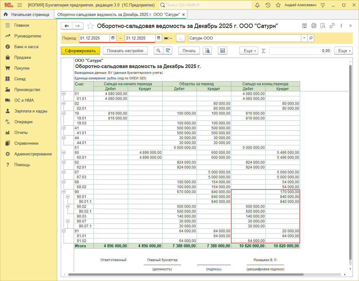 Закрытие счета 91 проводка