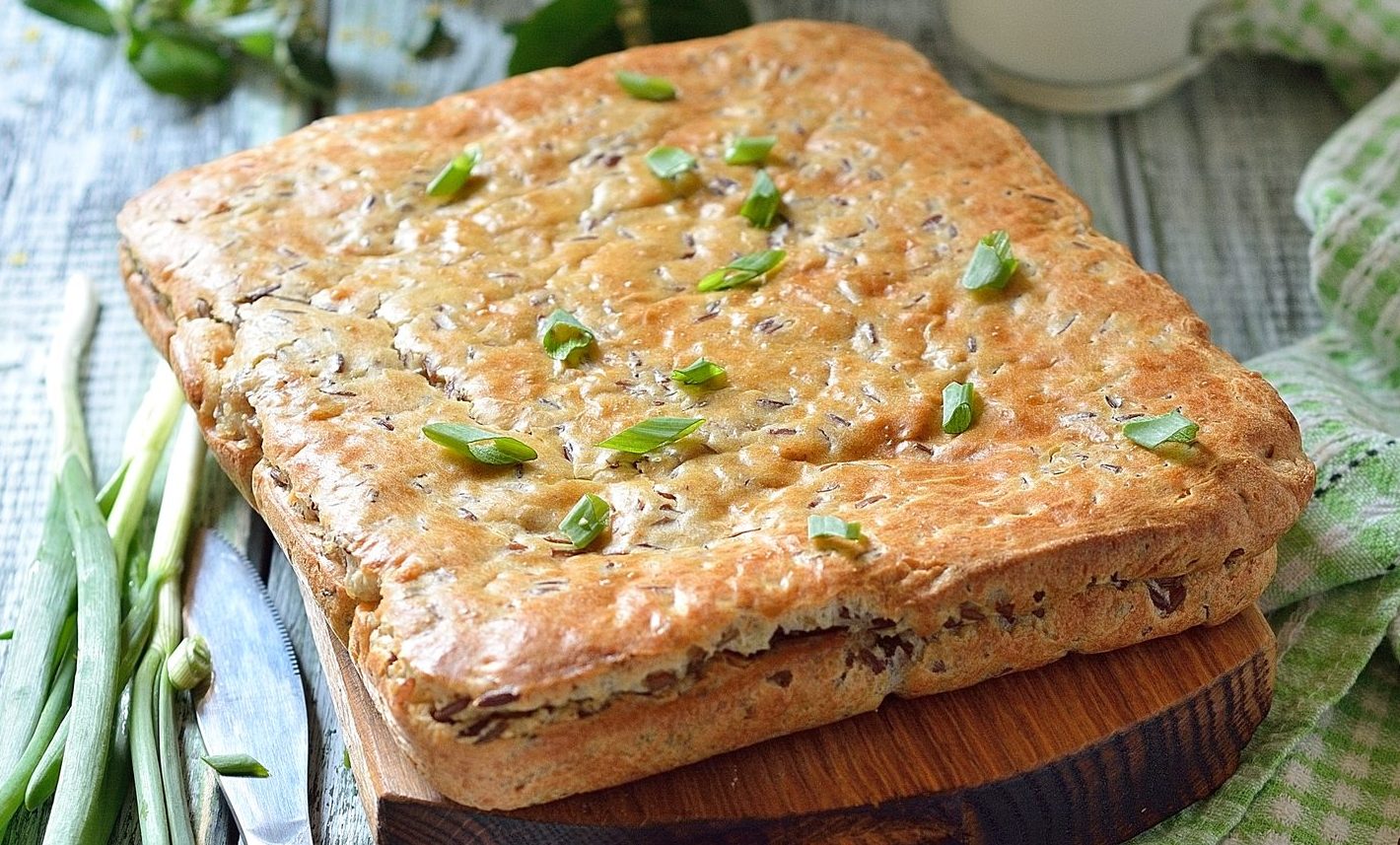 Заливной пирог с яйцом рисом луком