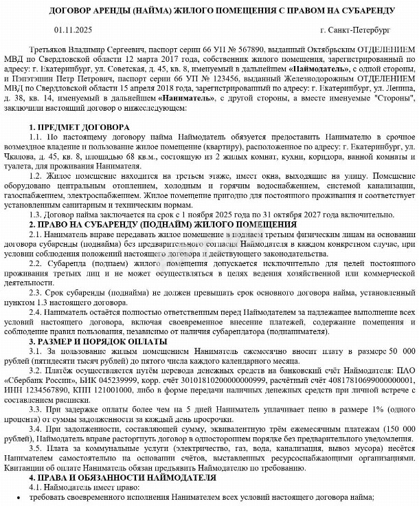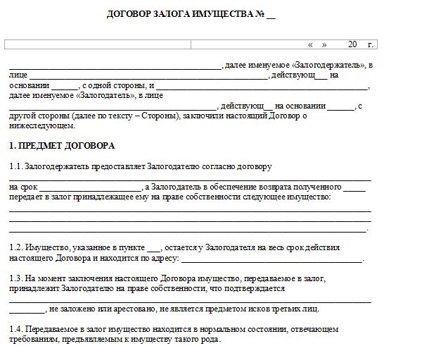 Залог при аренде квартиры образец