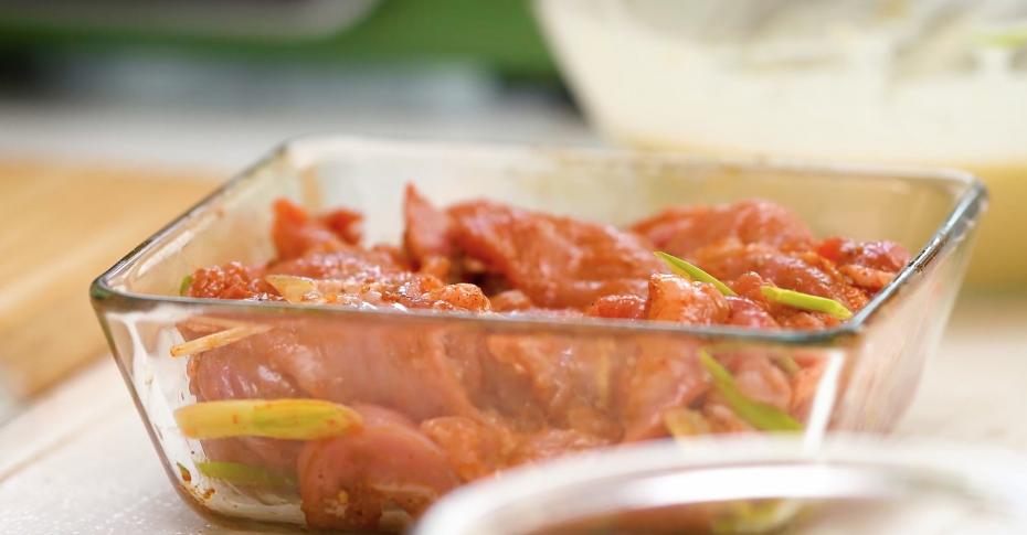 Замариновать кусочки индейки