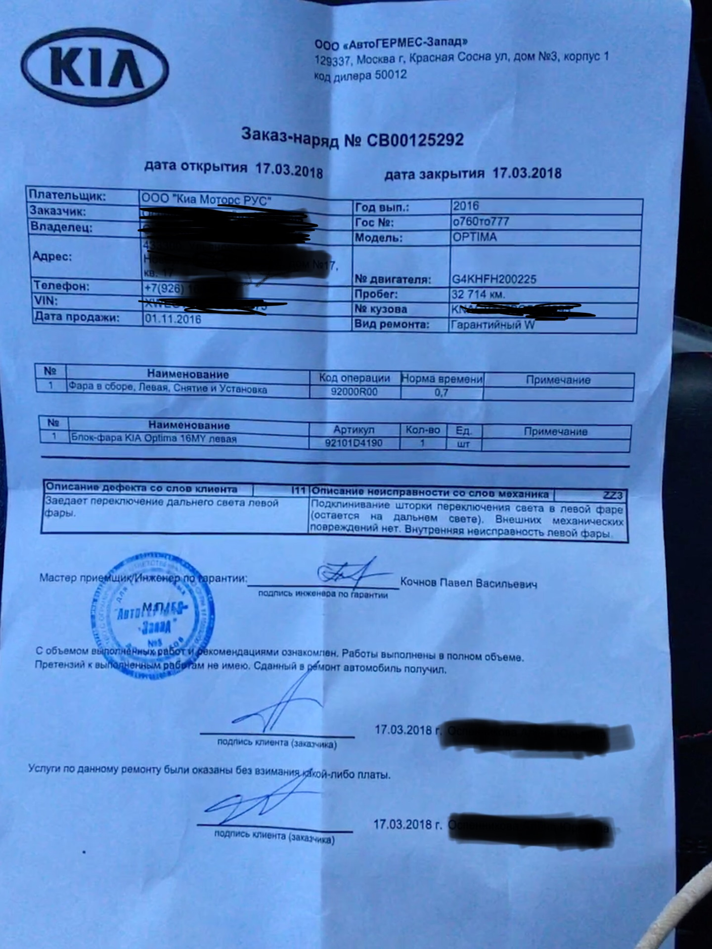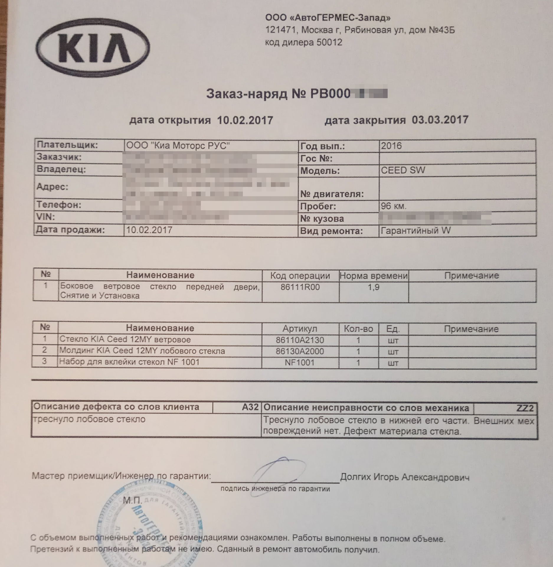 Замена двигателя по гарантии
