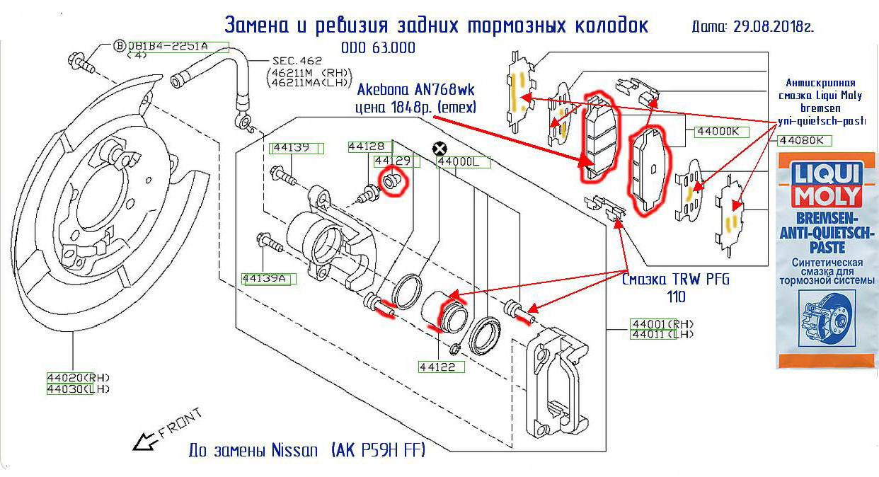 Замена колодок схема