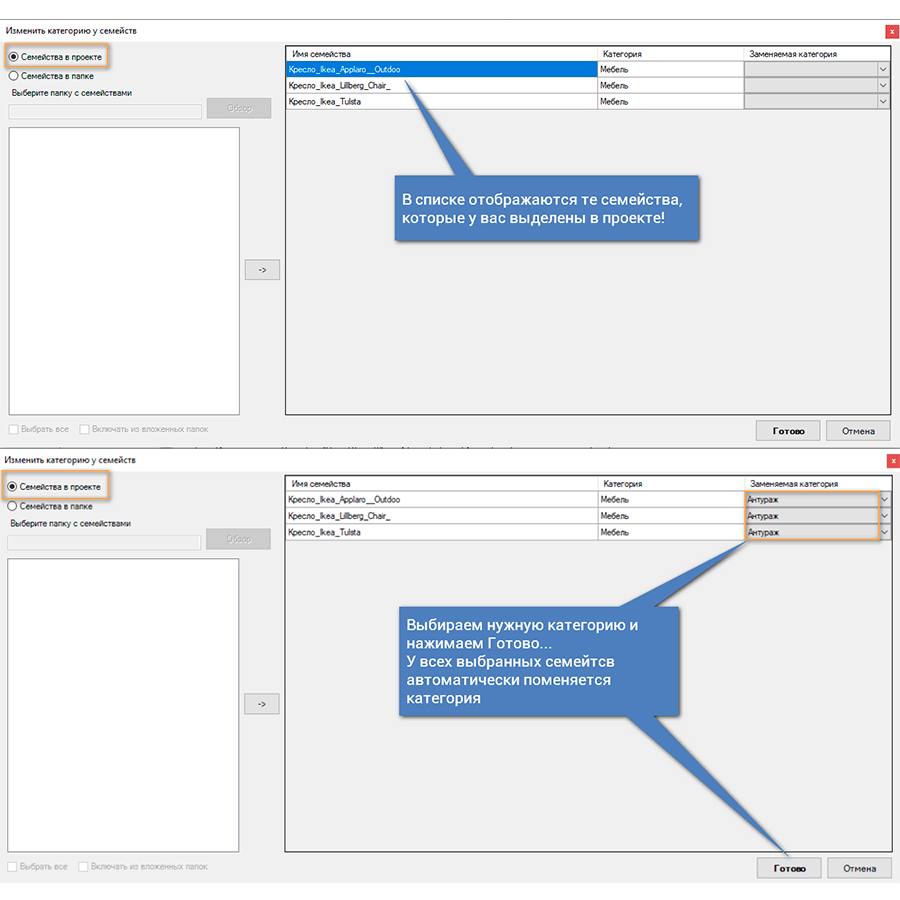Замена в категории это