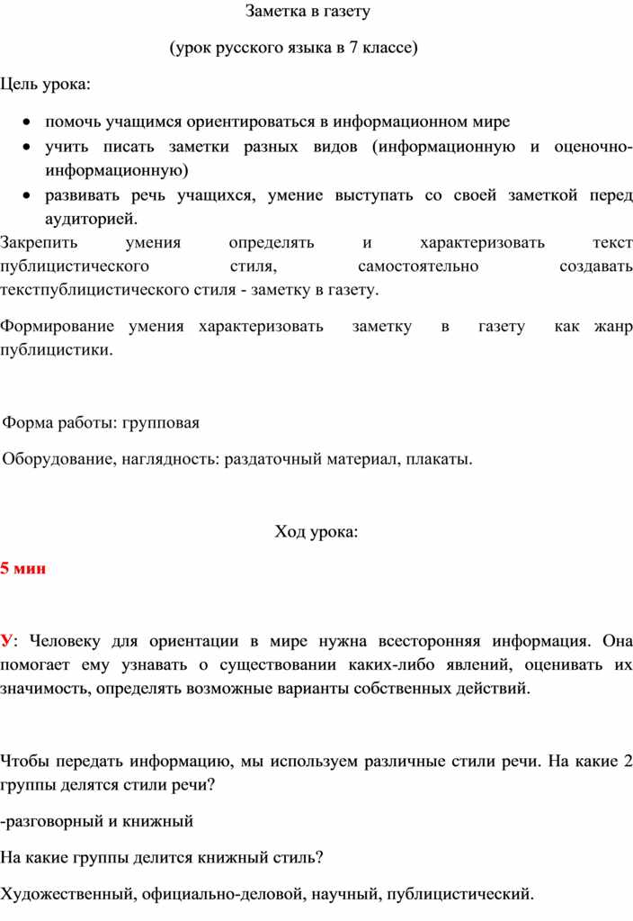 Заметка в газету 3 класс