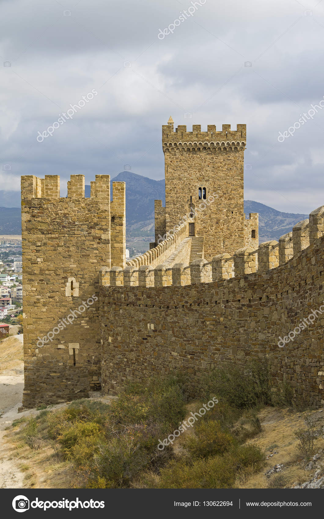 Генуэзская крепость — крепость в городе Судак, построенная генуэзцами как Фотоальбом . Генуэзская крепость в Судаке . Запустить слайдшоу . 1 036 1 7 . Фортификационный комплекс крепости состоит из двух линий обороны: внешней (замок Св . Креста в генуэзских источниках) . . .
