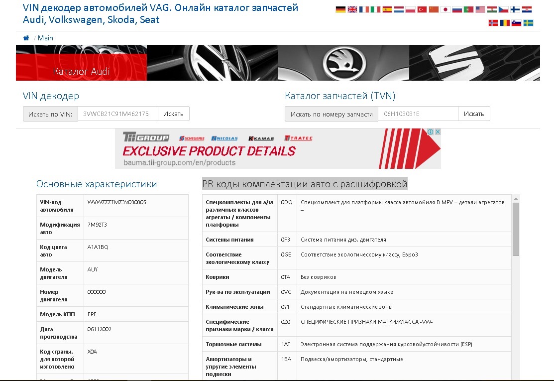 Запчасти по вину ауди 109 фото
