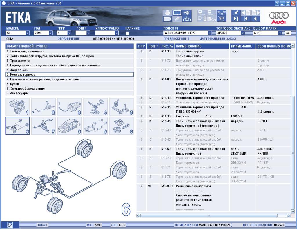 Запчасти по вину ауди