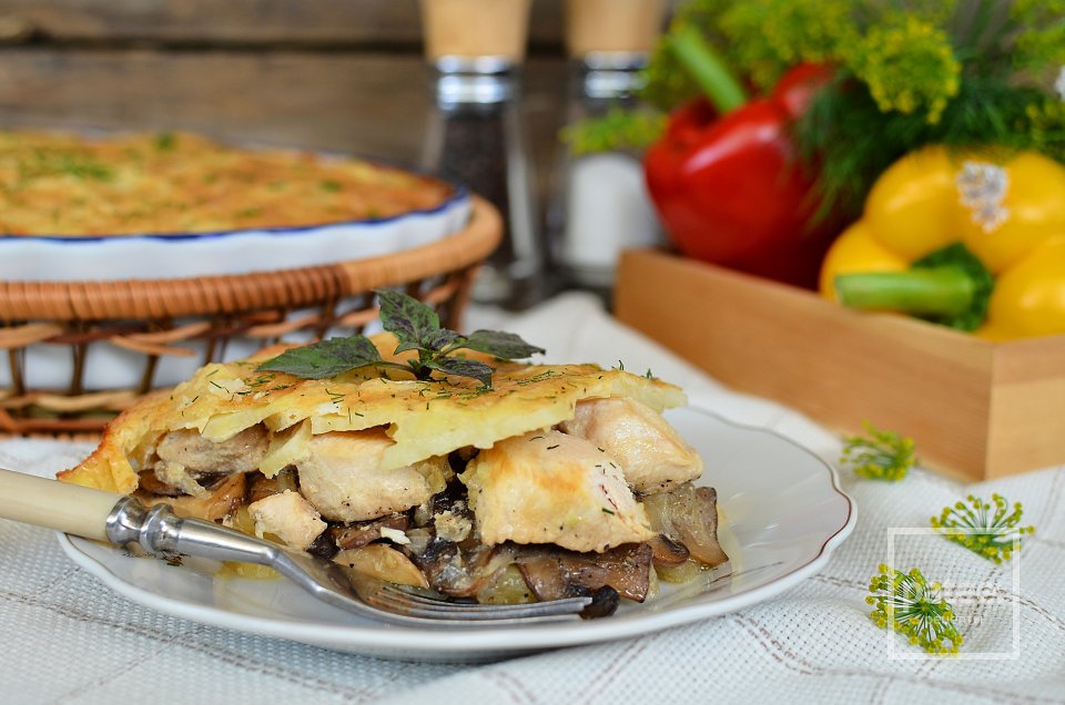 Запеканка с грибами и филе