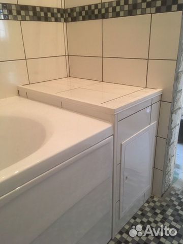 Фото выполненных работ, отзывы . Ремонт квартиры Дзержинского 129 - Облицовка плиткой ванной комнаты . Ремонт квартиры Дзержинского 129 - Отверстия, запил плитки под 45 градусов на коробах . . .