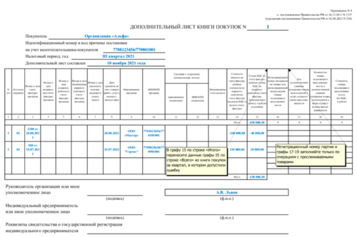 Запись доп листа в книге покупок 57 фотографий