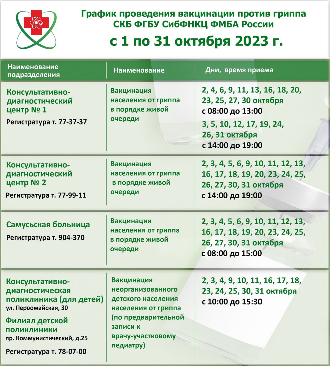 Запись на вакцинацию от гриппа