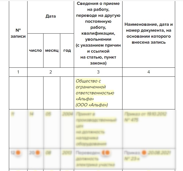 Запись о временном трудовом переводе
