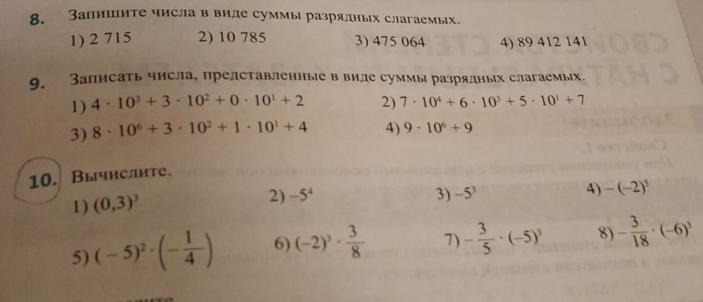 Запиши число представленное суммой разрядных чисел