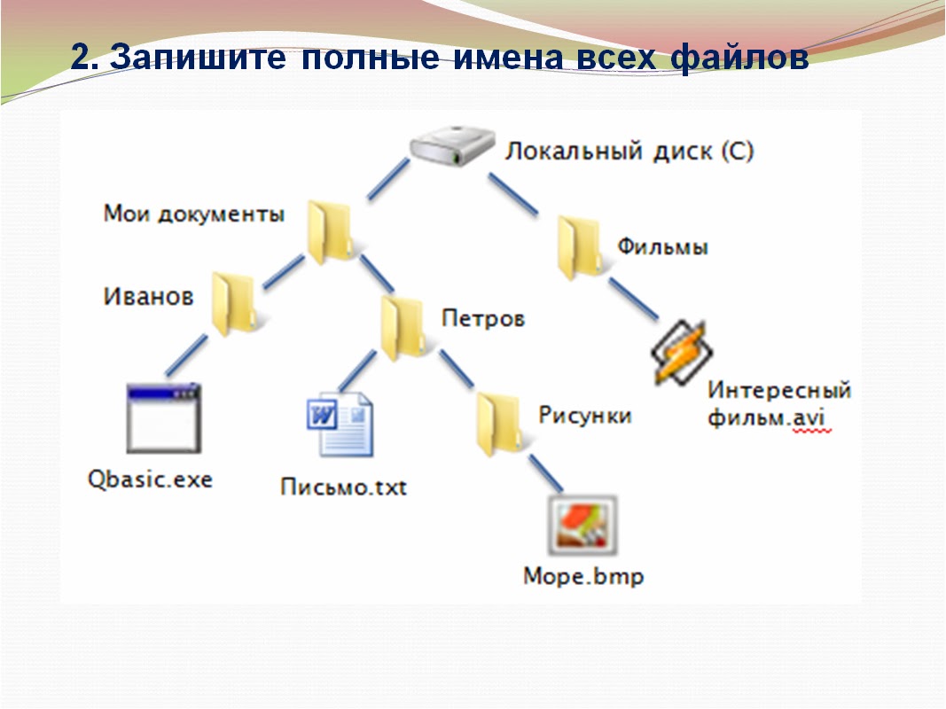 Запишите полные имена всех файлов путь