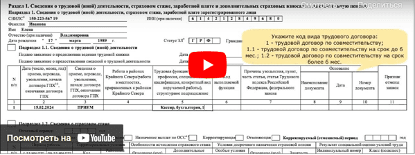 Заполнение ефс 1 при переводе