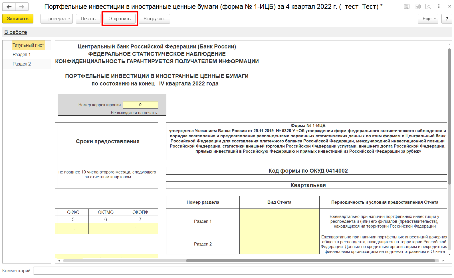 Заполнение отчета 1 цб