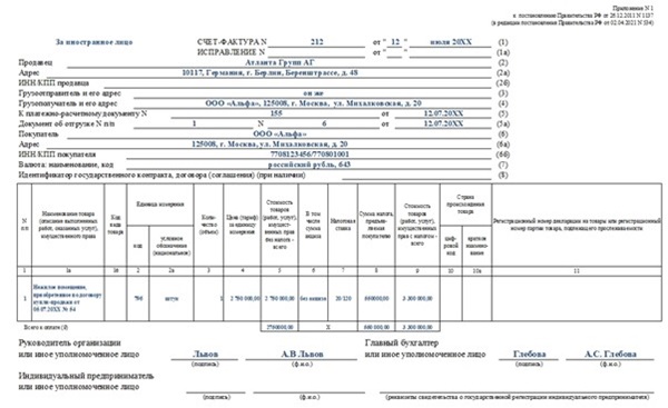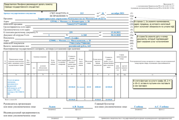 Заполнение счета фактуры налоговым агентом