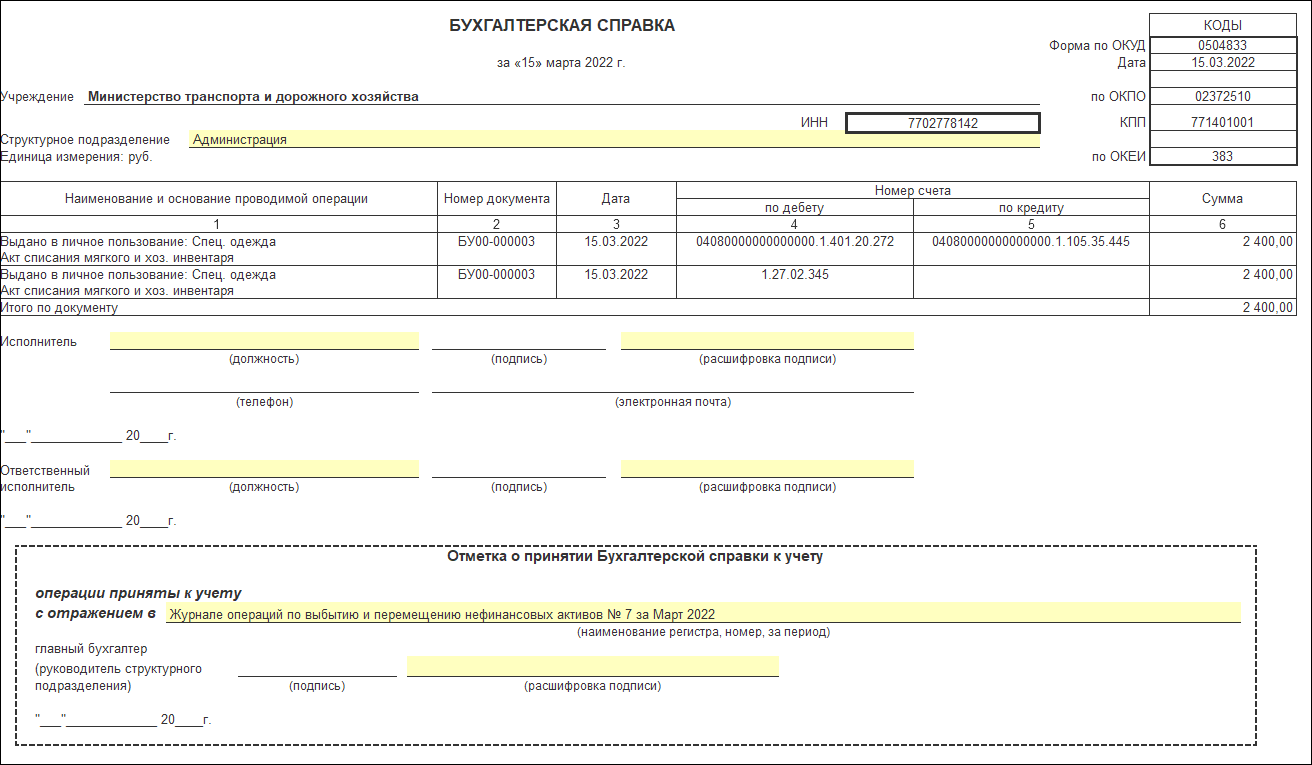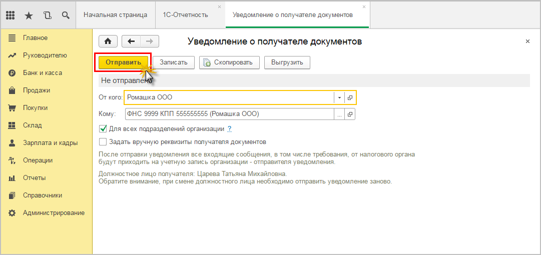 Заполнение уведомлений в 1с