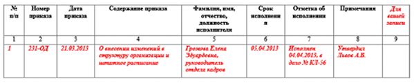 Заполнение журнала приказов по личному составу