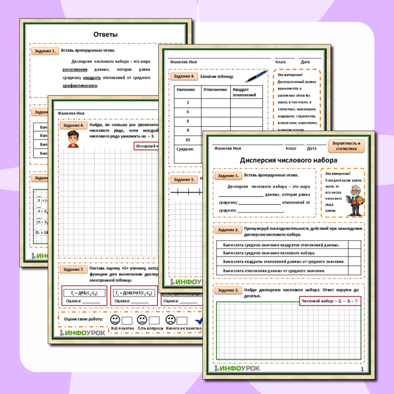 Заполни таблицу дисперсии числового набора