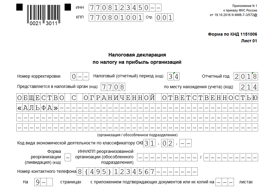 Заполнить налоговую декларацию по прибыли