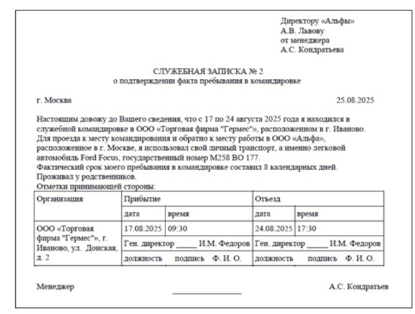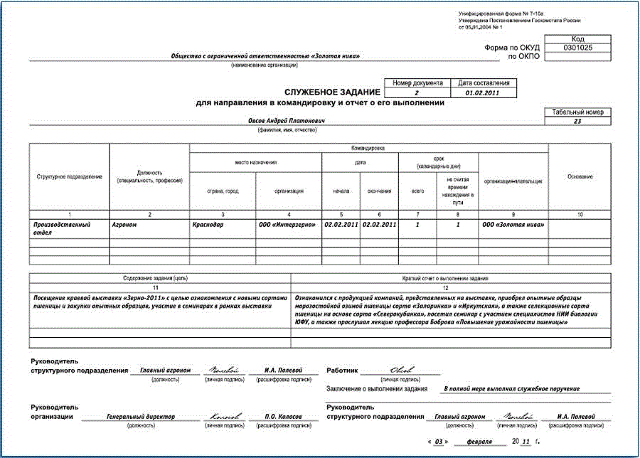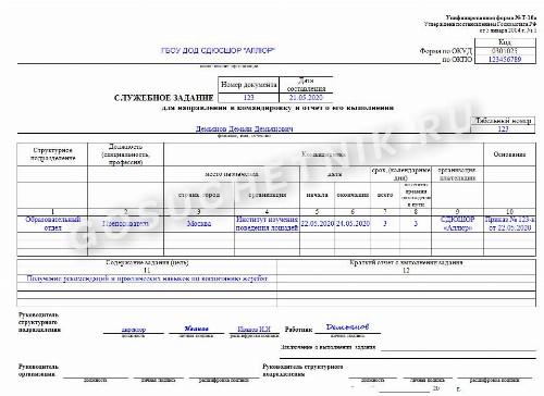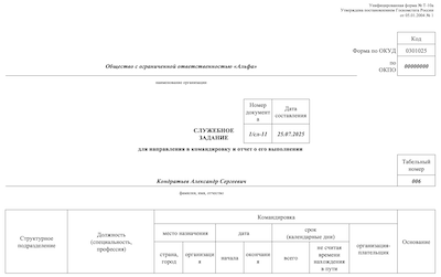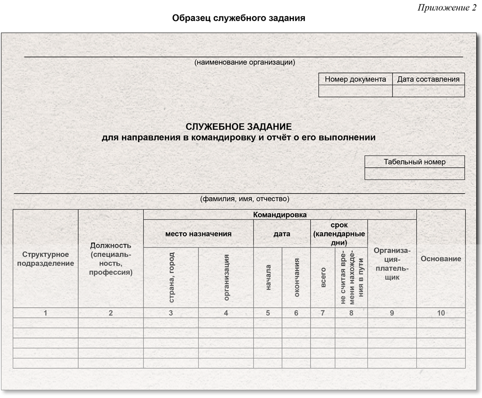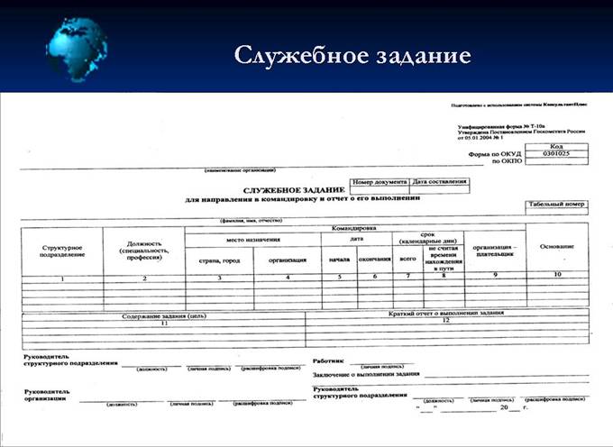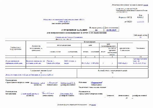 Заполнить служебное задание