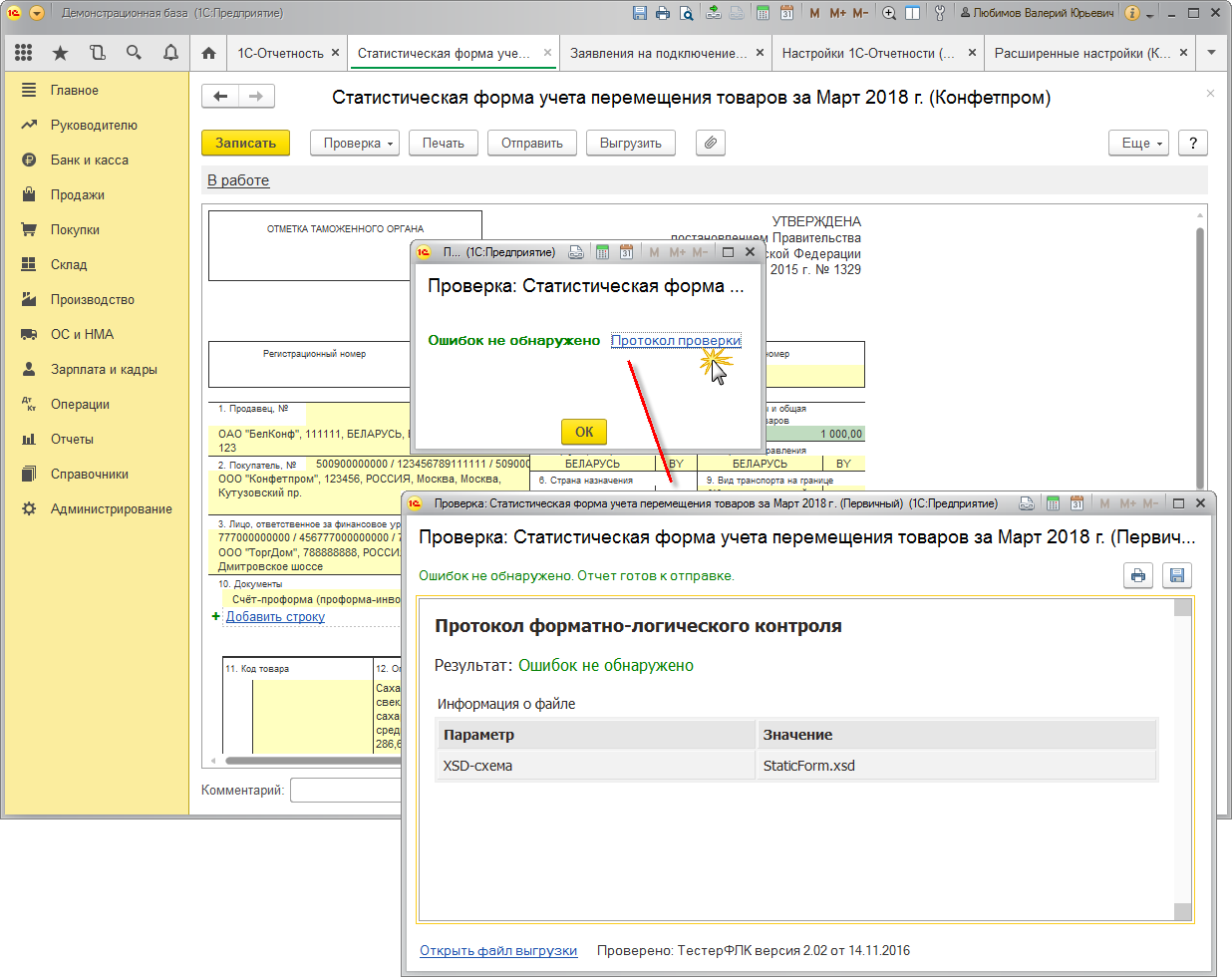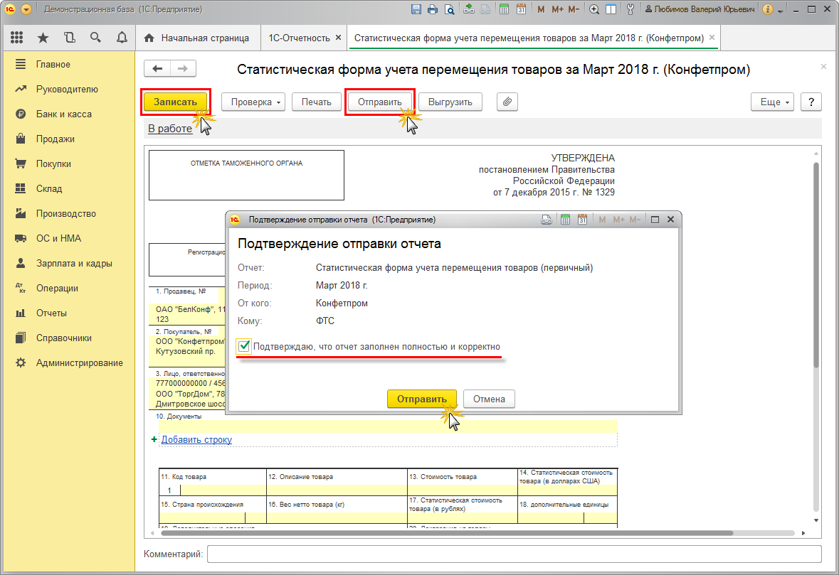 Заполнить статистическую форму перемещения товаров