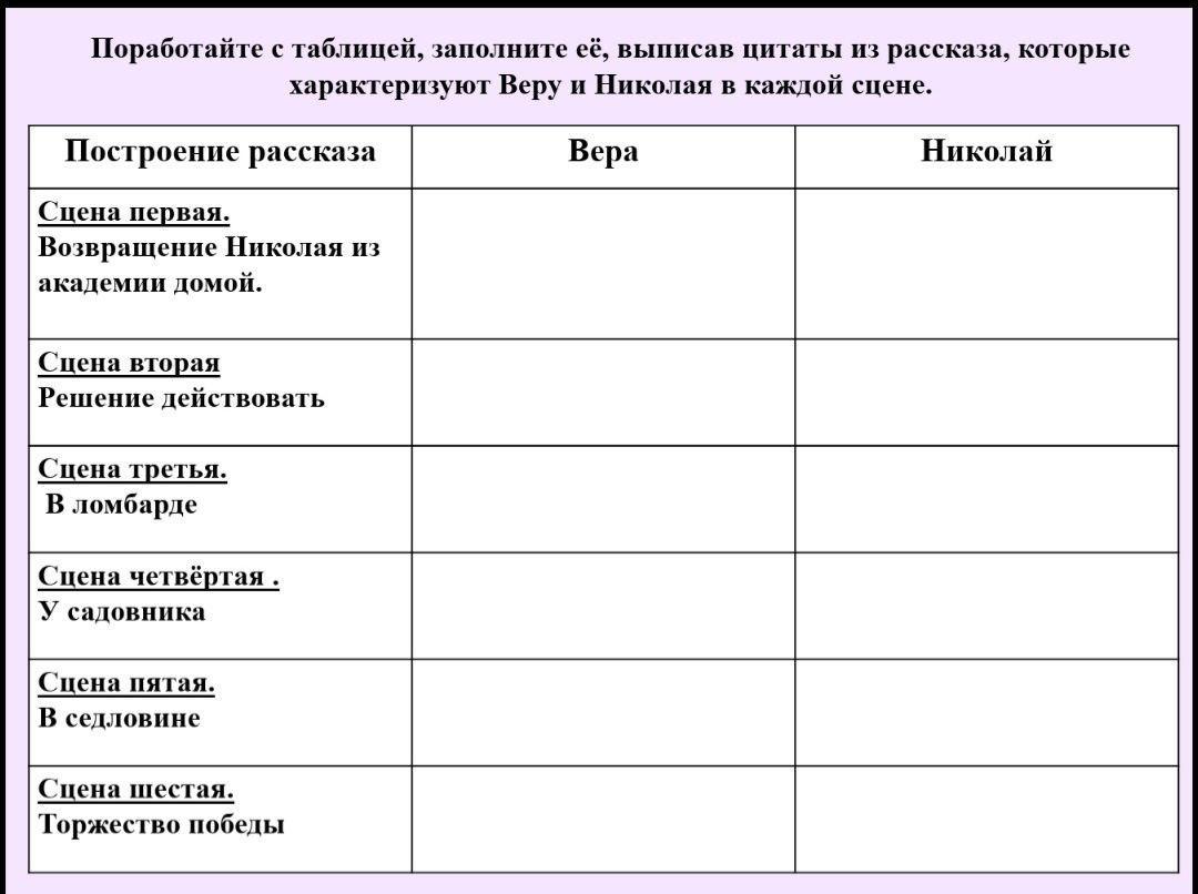 Заполните таблицу цитатами из драмы 116 фотографий