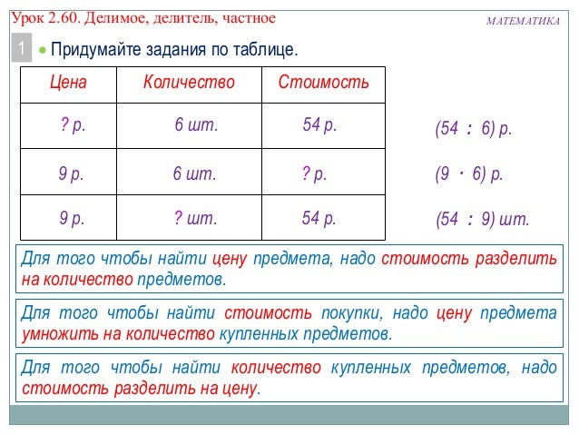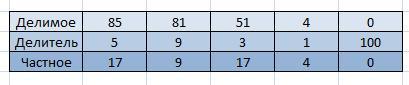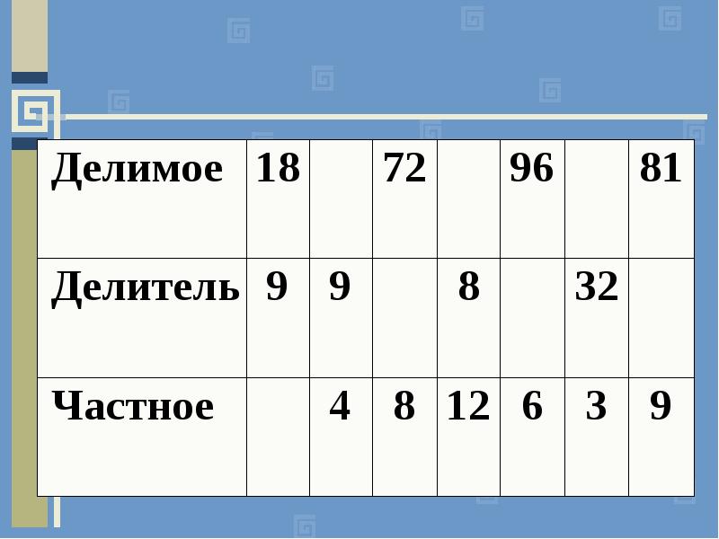 Заполните таблицу делимое 72