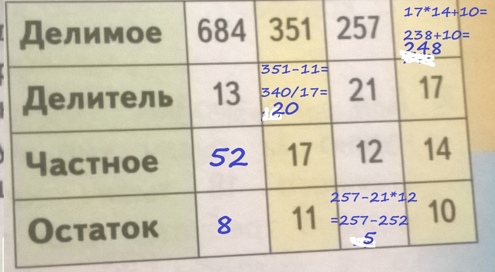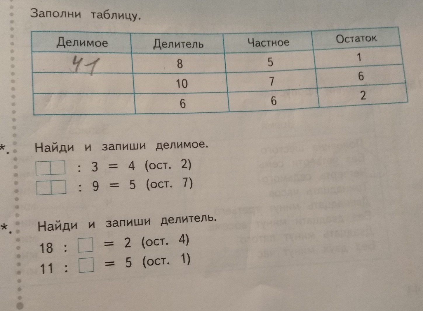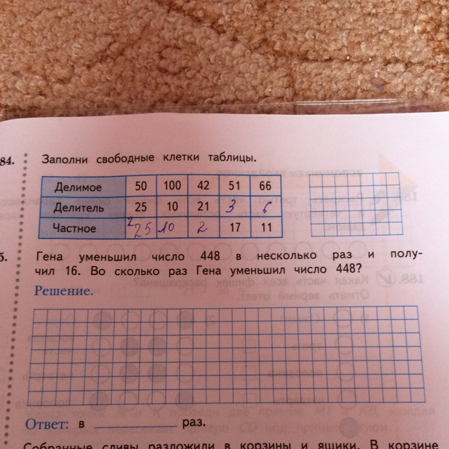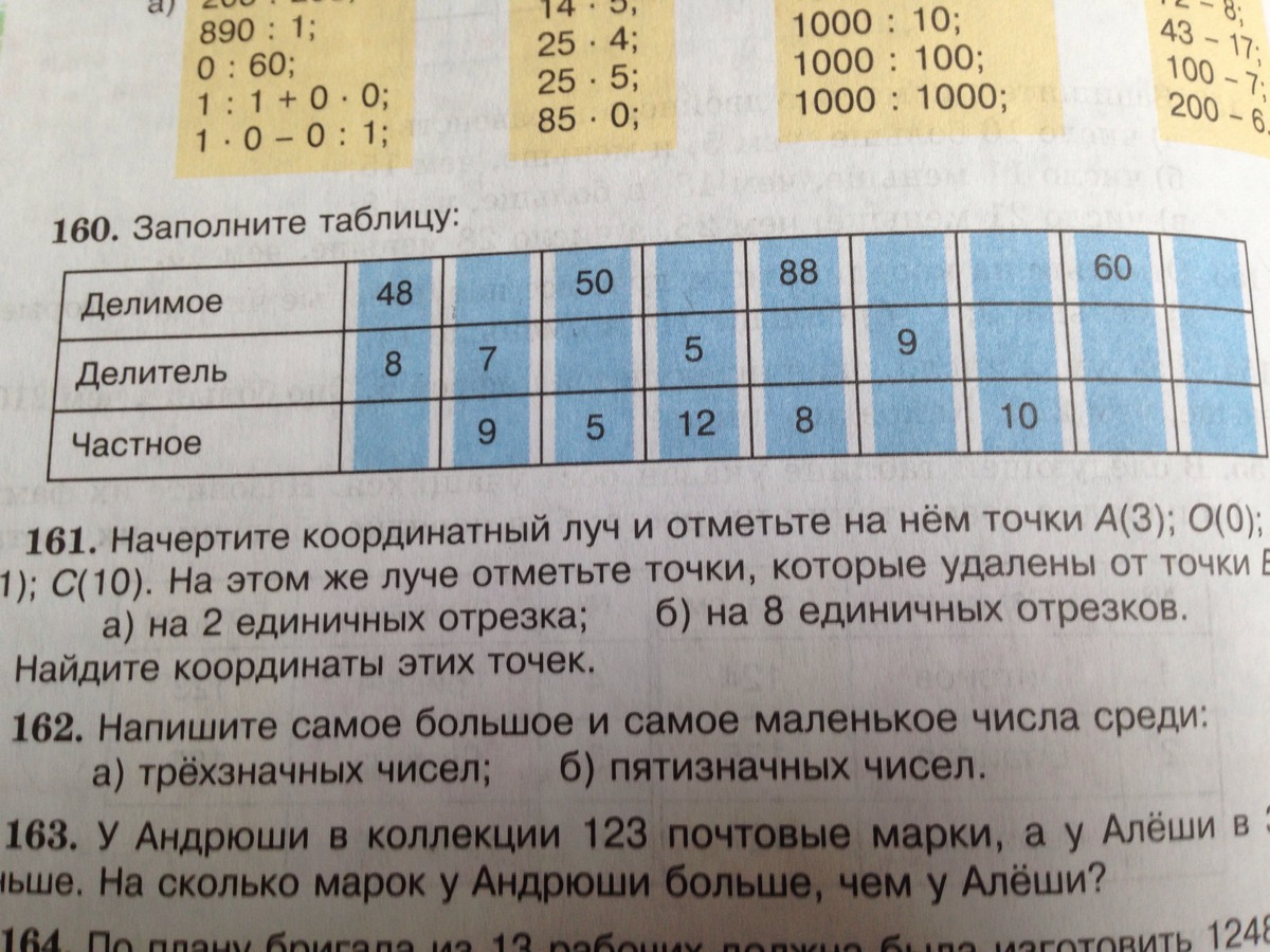 Заполните таблицу делимое 72 110 фото