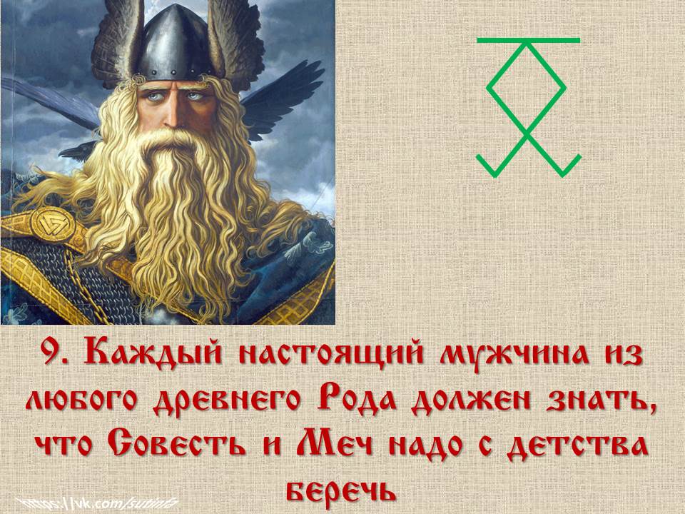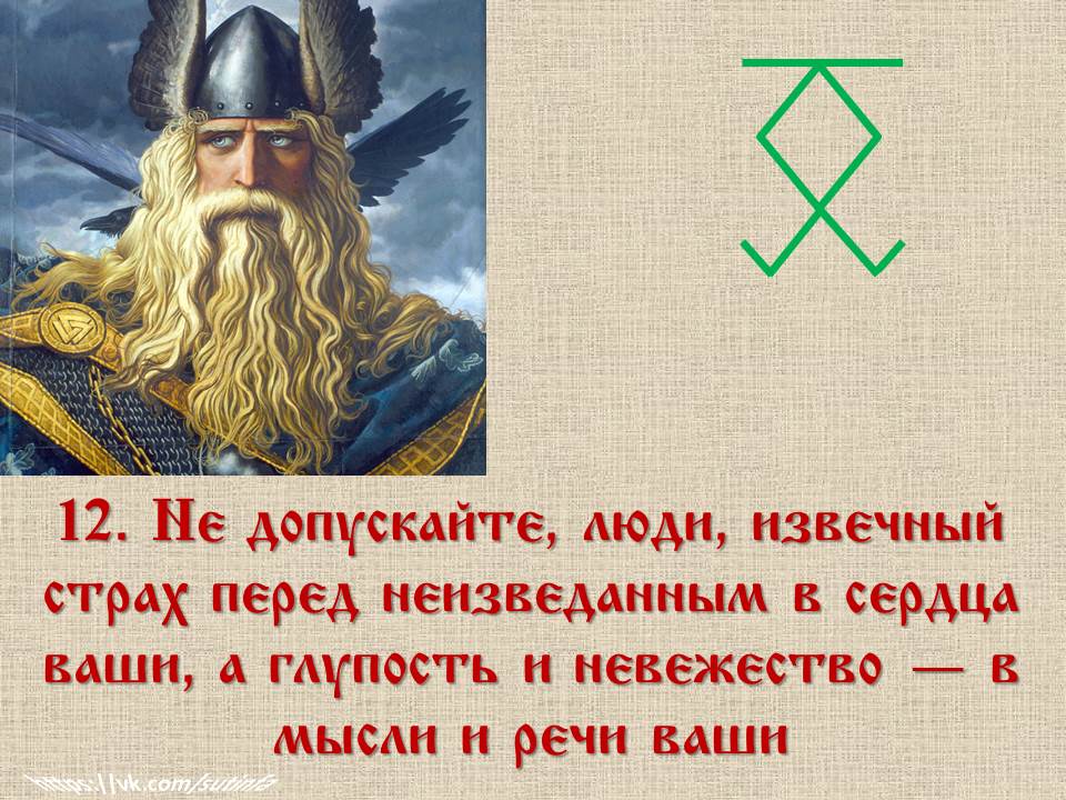 ✅ 11. «Будьте всегда стойкими и решительными в битвах с ворогом и не выпускайте из рук мечей своих, оберегая древние Роды свои и следуя по вечному Правому Пути в Чертоги Волхаллы».
